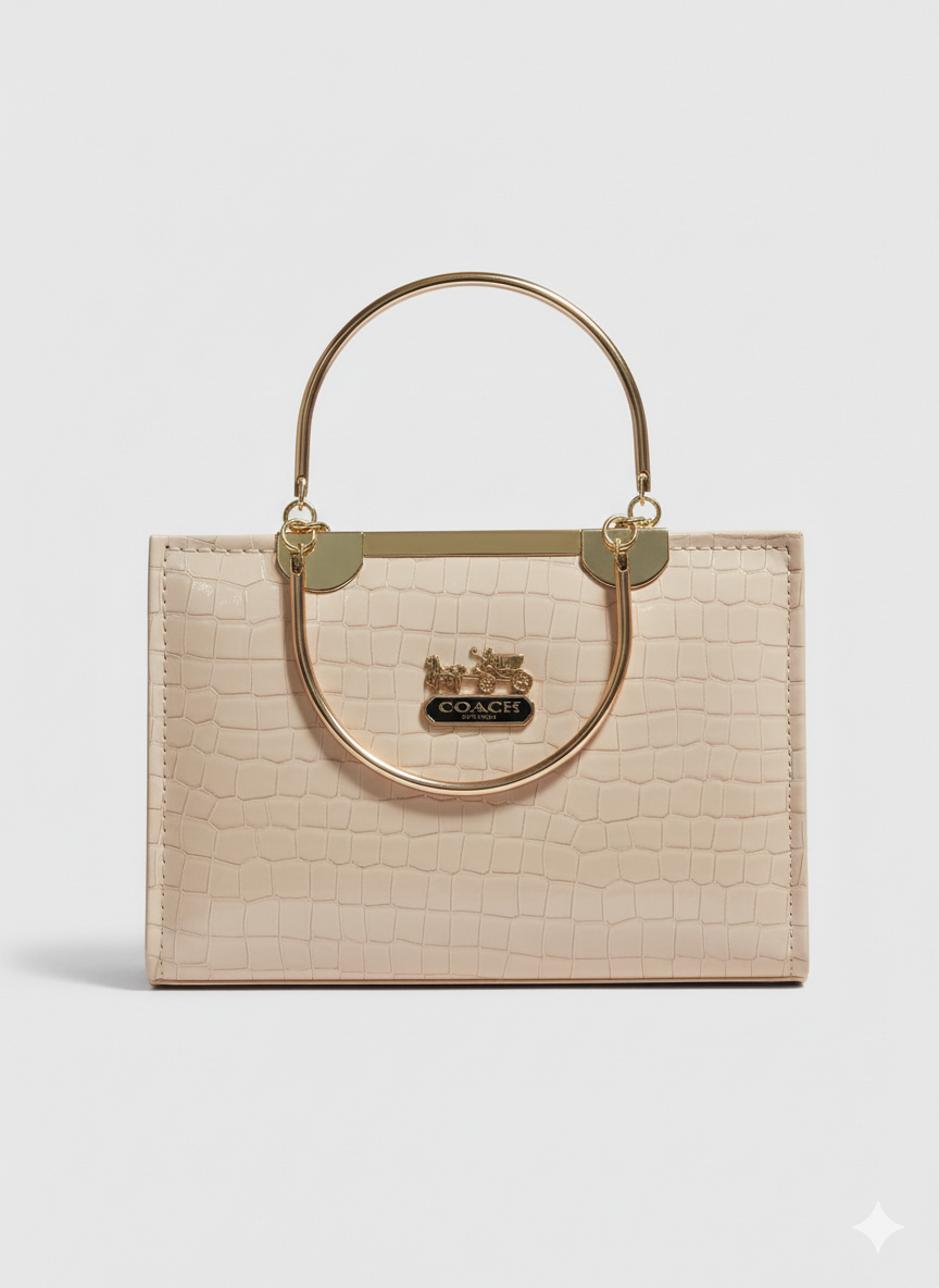 Step into timeless sophistication with the Royal Croc Charm Handbag — a masterpiece of luxury and class. Crafted with a glossy croc-textured exterior, this structured handbag features a bold gold metallic top handle that adds a regal touch to its design. The bag’s sleek silhouette and rich black tone make it perfect for both formal events and chic evening outings. Designed for the modern woman who loves to make a statement, this piece beautifully balances elegance, strength, and luxury.