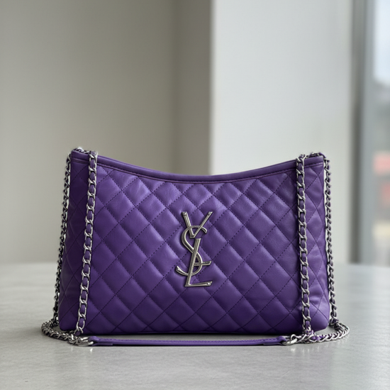 Elevate your style with the Signature Luxe Puffer Bag, a perfect blend of elegance and modern design. Featuring the iconic puffed YSL logo on the front, this bag is crafted with a chic quilted finish that adds texture and sophistication. The versatile chain and fabric strap allows you to wear it both as a shoulder bag and crossbody, making it ideal for everyday use or evening outings. Spacious enough to carry your essentials while maintaining a sleek silhouette, this bag is the ultimate symbol of luxury and timeless fashion.