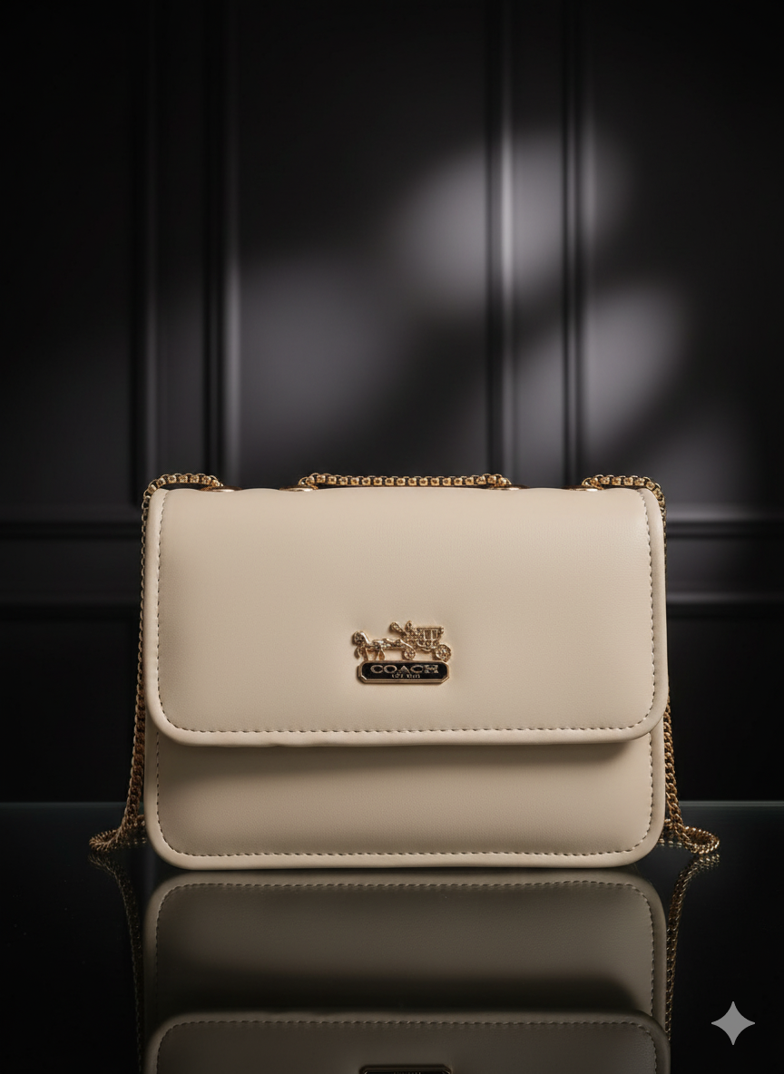 A sleek and modern crossbody bag designed in a structured box style silhouette, this piece combines elegance with everyday functionality. Crafted from premium material, it features a signature front logo detail that adds a touch of luxury. The metal chain strap, interwoven with leather, allows versatile styling — wear it on the shoulder or as a chic crossbody.