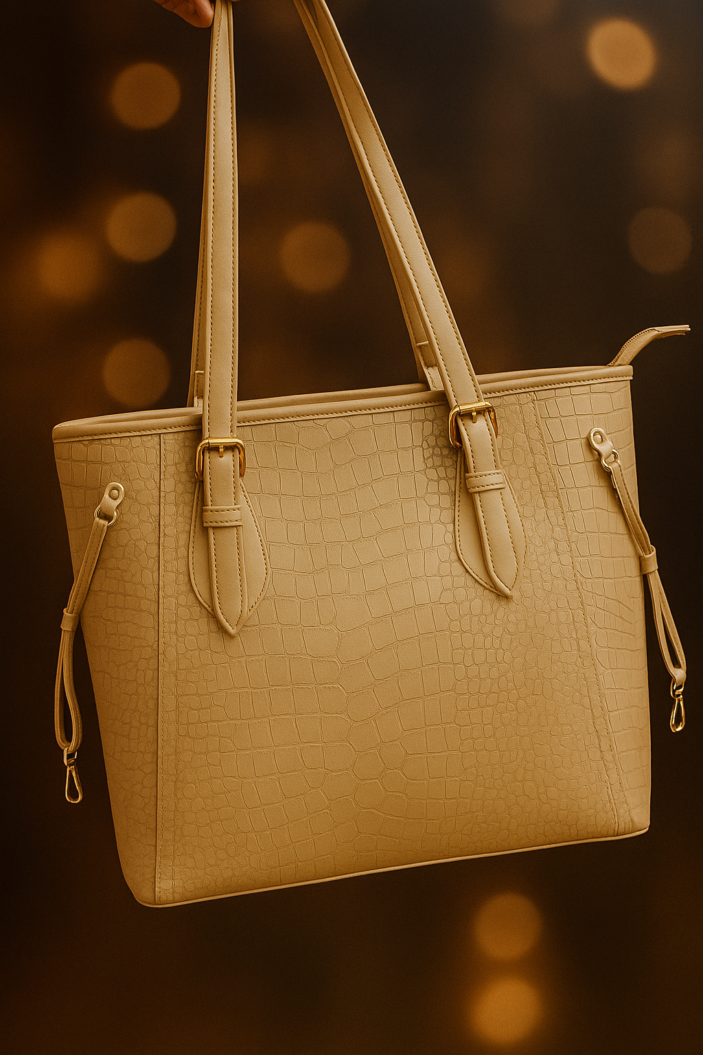 Crocodile-Textured Leather Tote Bags – Beige, Black & Brown