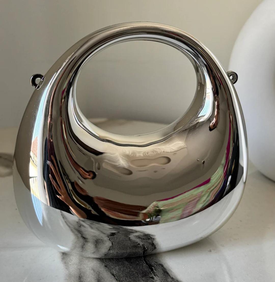 The Viral Metallic Clutch – Mini Silver is your new go-to for turning heads and stealing the spotlight. With its sleek acrylic body, glossy silver finish, and compact design, this bag brings futuristic glam to any outfit. Lightweight yet sturdy, it’s perfect for nights out, brunch dates, or making a statement at any event.