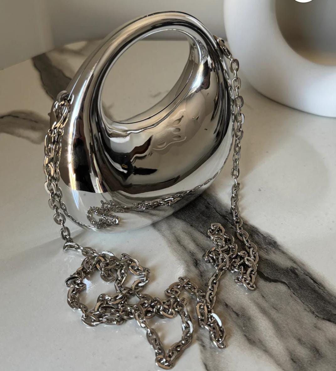 Viral Metallic Clutch with Chain - Mini Silver bag